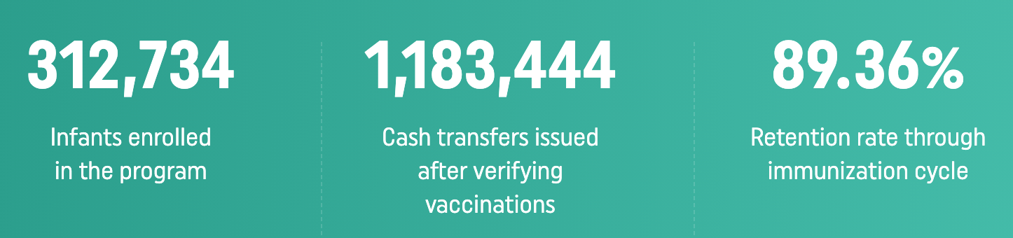 Thankfully, New Incentives is making a difference. A randomized control trial showed that the program helped increase immunization coverage for children between 12 and 16 months, meaning more children are protected from vaccine-preventable diseases, helping them live longer, healthier lives.