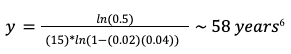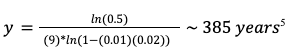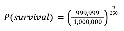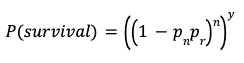 Now, the probability of you surviving y years without such an adverse event is given (approximately) by4:
