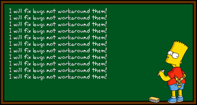 When trying to fix something, just trying to make it work without solving the issue is problematic. Using a workaround on buggy code isn’t going to resolve the issue. You need to treat bugs. If you don’t, over time the code will pile up, becoming full of workarounds, becoming impossible to understand and/or change.